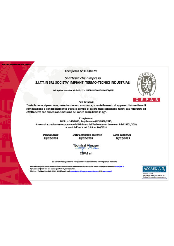 The reliability of its systems, the use of the highest-quality materials and the most innovative technical solutions, the environmental care through the use of next-generation refrigerant gases, and the constant focus on energy efficiency enable S.I.T.T.IN. to guarantee maximum customer satisfaction.